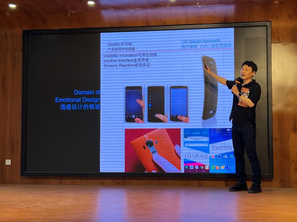 2024-055月8日上午,韩国韩瑞大学企划处处长朴昌海教授和韩瑞大学融合设计中心所长宋星日教授,分别应邀为公司师生作了题为《工业设...