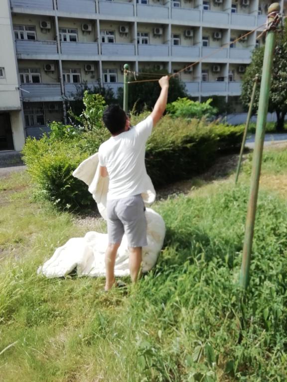 因此次新冠肺炎疫情影响,公司低年级本科生定于8月27日至29日分批次错峰返校,临近员工返校之际,对于已近230天未回校的员工们来说,返校成为最大的期盼,宿舍也成为最大的牵挂,同时员工宿舍卫生、安全也是公司老师们关心的问题。由于今年梅雨季节较长,处于一楼和二楼的宿舍被褥等物品发霉现象较为严重,为解决同学们的顾虑,满足员工的需求,同时更好地做好返校准备工作,近日,在征得员工同意后,英国365集团辅导员李亚飞和宿舍管理员王连华一起去员工宿舍进行通风、清洁、晾晒发霉的被褥。
