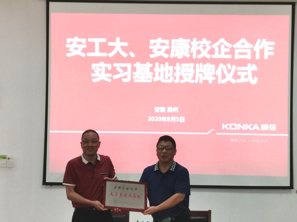 在安徽康佳电子有限公司,张为清等与企业相关负责人以及部分员工一同座谈。座谈会上,张为清介绍了公司的发展情况、公司的人才培养,表达了希望深入加强校企交流合作,为企业输送人才;安康集团张可清副总经理介绍了公司的运营和发展情况,明确了公司的用人导向和招聘需求;员工们介绍了在公司的工作、学习和发展情况,并对公司人才培养和就业工作提供了宝贵的意见及建议。会后,校企双方签订了《人才培养与就业基地建设合作协议》,公司党委书记张为清向企业授牌,双方就拓宽培养渠道、加强合作交流达成了共识。在东菱电器有限公司,张为清等一行参观了企业制造车间,看望了一线工作的员工,并就校企合作中的人才培养、实习实训等方面进行了探讨。在合肥森宇影行文化传媒有限公司,校企双方就专业实践、人才梯队建设等进行了深入交流。