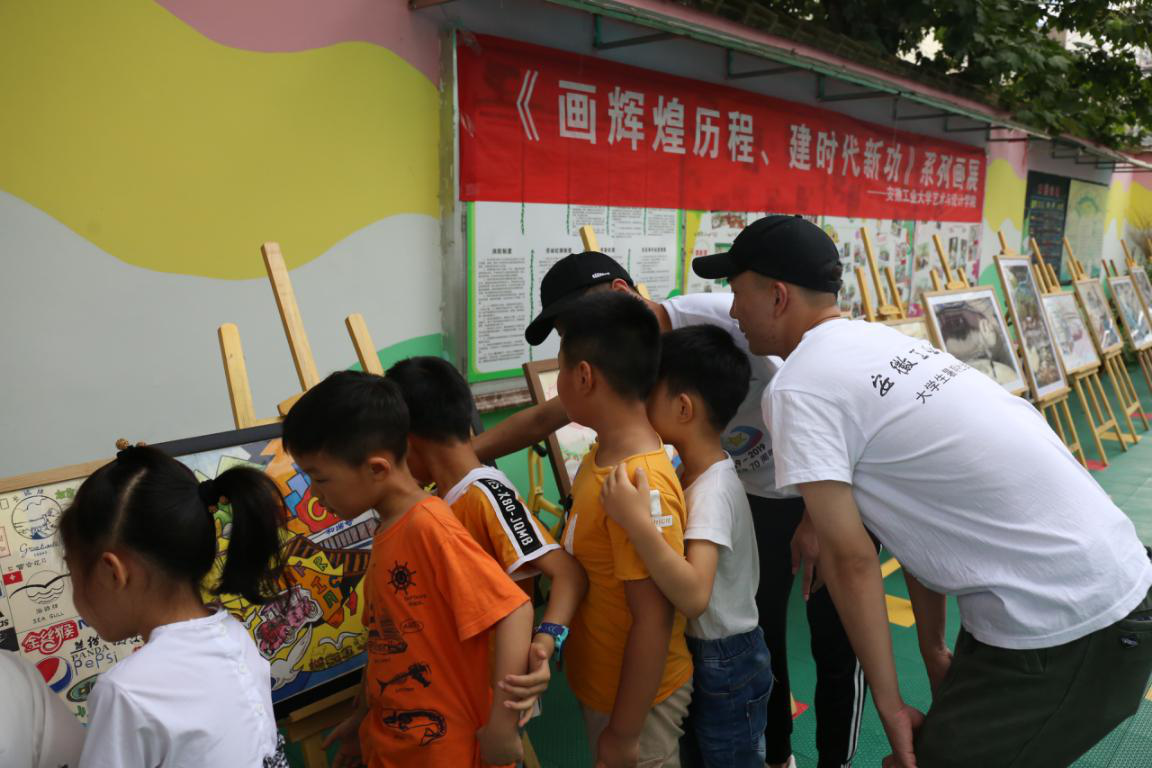 此次暑假,实践队一行30余人不畏酷暑,走进马鞍山南湖公园三匹马广场,开展了以“献礼峥嵘七十载·青春建功新时代”为主题的暑期社会实践活动,给市民们带来了丝丝清凉。实践活动包括“庆祝新中国成立70周年”的主题系列画展以及以器乐欣赏为主的高雅艺术汇演。主题画展向广大市民群众再现了祖国七十年的辉煌历程与时代社会变迁。古筝、二胡、手风琴、电钢、小提琴等东西方、传统现代相结合的器乐演奏,使现场的市民群众在艺术和美的浸润中更加感性、更加深刻地体会到国家和民族的气质精神。前不久,实践队还走进了桃源街道马鞍山新星幼儿园开展“结对子种文化”的美育课堂活动,通过带小朋友一对一进行手工制作和绘画等方式,培养他们丰盈的审美认知和审美情感,让美的种子在每个孩子的心中生根发芽。