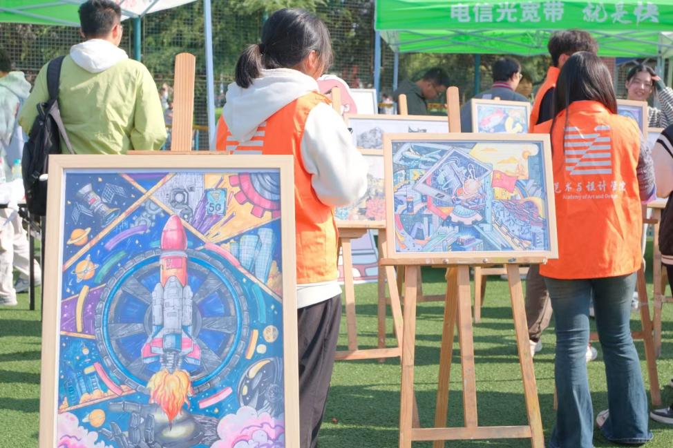 10月23日,一场精彩纷呈的国庆主题画展伴随着2024年秋季运动会在安工大秀山校区田径场拉开序幕,为这个金秋时节增添了一抹绚丽的色彩。