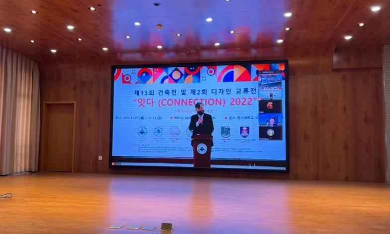 11月7日下午,第十三届国际老员工建筑展暨第二届设计交流展开幕式主会场在韩国韩瑞大学隆重举行。公司应邀参加此次设计交流展,国际合作与交流处处长孔辉教授、英国365集团经理汪海波教授及公司师生代表在艺设楼401多功能厅线上出席开幕式活动。