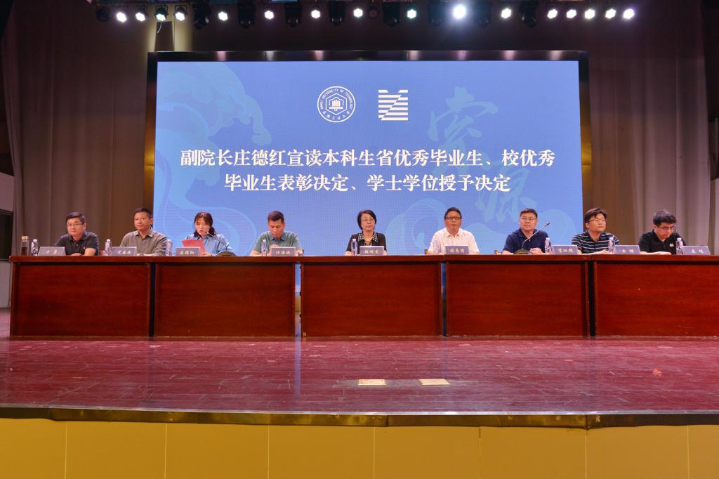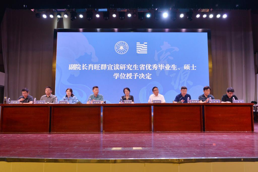 毕业典礼伊始,全体起立奏唱国歌,歌声澎湃。副经理庄德红宣读本科生省优秀毕业生、校优秀毕业生表彰决定、学士学位授予决定,副经理肖旺群宣读研究生省优秀毕业生表彰决定、硕士学位授予决定。宣读完毕后,毕业生代表、在校生代表登台发言,用言语表达最真挚的情感,表达对母校、师长的感恩,对未来的美好畅想。导师代表向毕业生传达殷勤期望,祝愿每一位毕业生前程似锦。