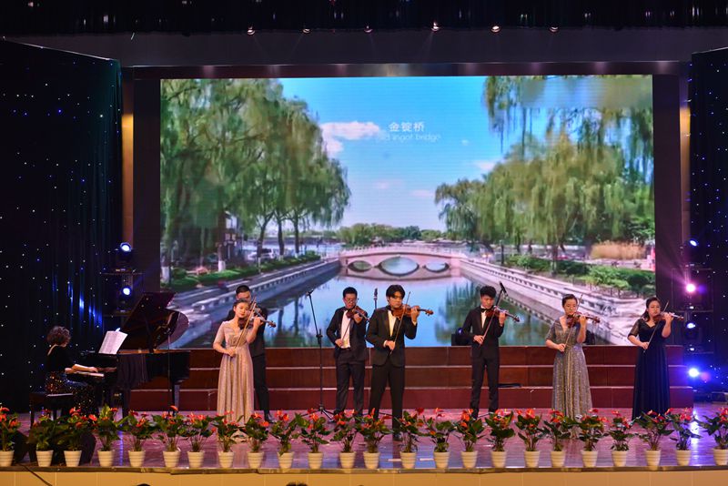 音乐会分为“峥嵘岁月”、“日月新天”、“春天故事”、“复兴之路”四个篇章,以经典乐曲《金蛇狂舞》澎湃开场,热情洋溢、昂扬高亢的旋律拉开了峥嵘岁月的金色过往。民乐合奏《我的祖国》、男生小合唱《弹起我心爱的土琵琶》、男生独唱《松花江上》等慷慨激昂的曲调将先辈顽强拼搏的坚强意志展现的淋漓尽致。西洋乐合奏《红旗颂》、女生小合唱《唱支山歌给党听》、古筝合奏《瑶族舞曲》以及情景剧表演唱《寸心》再现了中国共产党人继往开来、与时俱进的美好奋斗史,表达了人民对党的坚定拥护与热爱。歌曲《把一切献给党》诉说了党员无限忠诚的向党心声。小提琴齐奏《伟大的北京》奏出北京的光辉历史篇章,二胡齐奏《战马奔腾》尽诉边疆战士的赤胆衷肠,生动讲述了改革开放的“春天故事”。管乐重奏《第二圆舞曲》、女生独唱《白鸟》、《七月的草原》以及合唱《灯火里的中国》、《少年》、《领航》共同唱出了闪耀中国、辉煌时代。