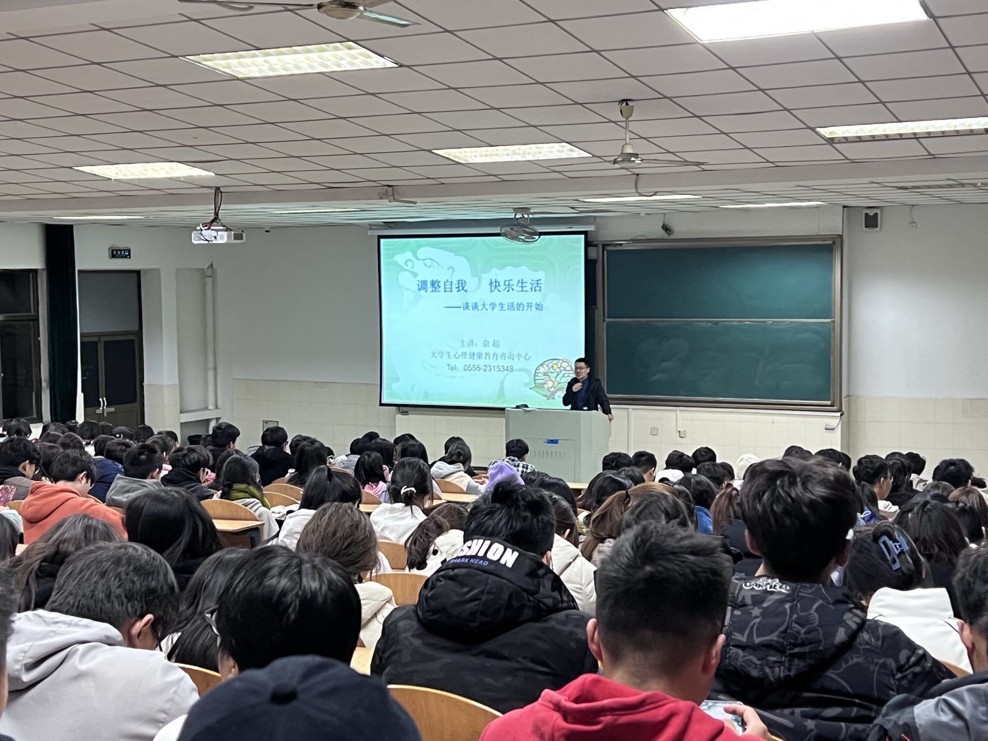 讲座上,俞超老师以“调整自我,快乐生活”为主题,从“情绪调控、集体生活、学习与成长、自我认识”四个方面对老员工活展开论述。俞超老师首先从自己的老员工活谈起,通过讲述大学的成长与学习经历,提醒同学们要接受理想与现实的落差,保持乐观积极向上的心态,热爱生活,珍爱生命;其次,结合校园真实案例,就新生同学如何调解自身情绪、适应老员工活提出科学、合理的建议;再次,他鼓励同学们学会调节好自己的情绪,建立良好的人际关系,学会接受爱和给予爱,同时要广泛培养兴趣爱好,创新性地学习,把握好当下,规划好未来。最后,俞老师介绍了校心理健康教育中心相关资源,帮助员工更好地理解心理咨询,提高积极寻求心理援助的意识。讲座涵盖了新生适应、人生规划、心理预期等多个方面,对大一新生容易出现的问题进行了分析和引导,现场氛围轻松愉快,同学们认真聆听,获益匪浅。