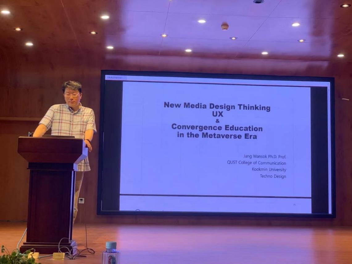 5月24日下午,青岛科技大学传媒公司执行经理,博士生导师杨建华教授,青岛科技大学外聘专家,韩国国民大学博士生导师张完硕教授应邀来公司作“动画角色速写与塑造”和“元宇宙时代的新媒体设计思维”两场专题学术报告会。视觉艺术设计系全体教师及20级视传和数媒本科生共同聆听了报告,报告会由视觉艺术设计系主任佘醒主持。