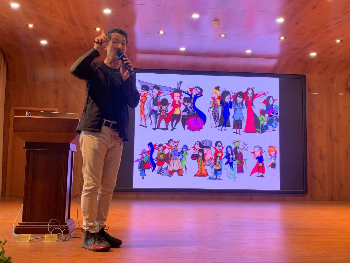 杨建华教授在“动画角色速写与塑造”专题报告会中,从学会运用多样性工具去进行线条的绘制,到从亲子表演中感悟姿态,到配合着音乐节奏感受动作情景,到捕捉连贯动态动作,再到学会用透视角度去夸张变形人体等层层递进,解剖了动画角色从普通速写到创意塑造的创作方法,给了在做师生很大的启发。