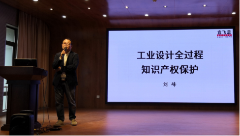 随后,刘峰先生作《工业设计全过程知识产权保护》讲座,他首先结合近年来设计领域几起知名产权纠纷事件,引出知识产权保护的重要性及必要性;随后,他详细讲解了专利和商标的分类以及申请的方法,尤其是与设计专业密切相关的外观专利、实用新型专利以及发明专利的区别与申请流程;最后,他勉励在座员工要积极申请各类专利,学会保护自己的设计成果。