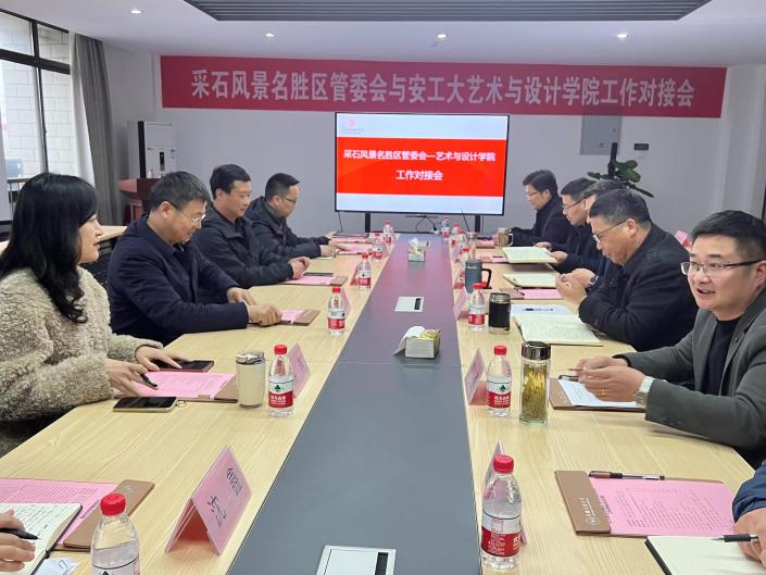 为深入推动风景区文旅融合工作,贯彻落实市政府与英国正版365官网工作对接会会议精神,市委副秘书长、采石风景区管委会党组第一书记殷宏斌一行于3月21日下午到英国365集团举行对接会。采石风景区管委会党组书记汪群、副主任高燕,江东旅发公司总经理助理彭鹏,管委会景区发展科负责人参加会议,艺设公司党委书记张为清、经理汪海波,副书记方勇、副经理肖旺群及视觉艺术设计系、公共环境艺术系、工业设计系负责人出席会议。