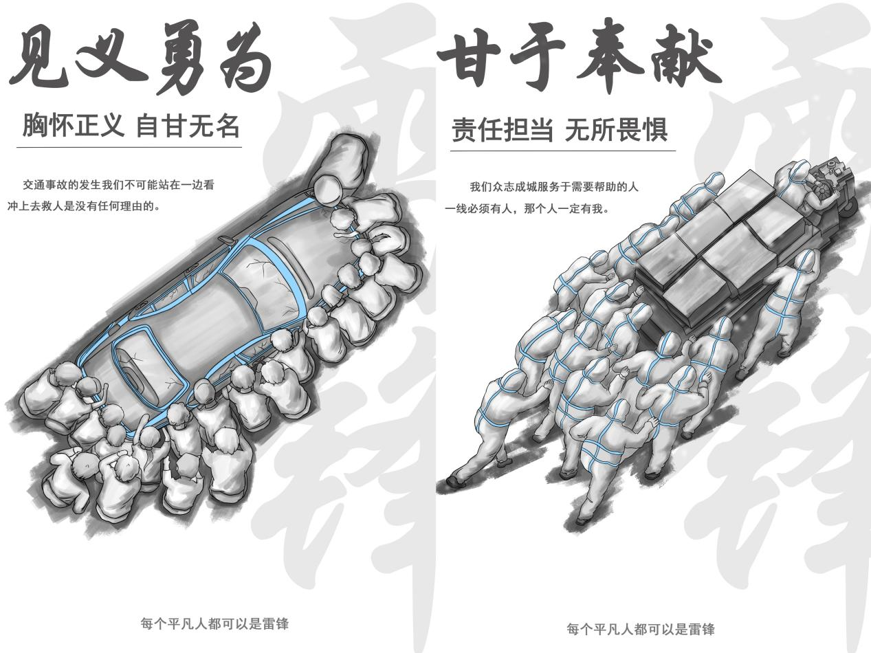 活动展览从3月29日开始,展出优秀作品共40余件。现场活动志愿者们为师生详细讲解海报背后的创作涵义,所有海报以“雷锋精神,永放光芒”为主题,以小见大、细致入微地解读着雷锋崇德向善、舍己为人、锐意进取的精神内涵,视角新颖,层次丰富,展现了工大学子学习雷锋精神的心路历程与累累硕果。同学们发挥专业特长,用画笔记录感悟,用创意润色敬意,用巧思淬炼学习成果,用实际行动弘扬雷锋精神。张力十足的海报令人叹为观止,吸引着往来师生的驻足欣赏,收获了一众好评。