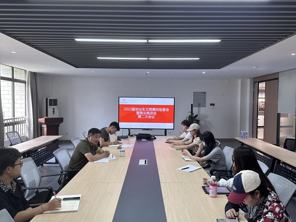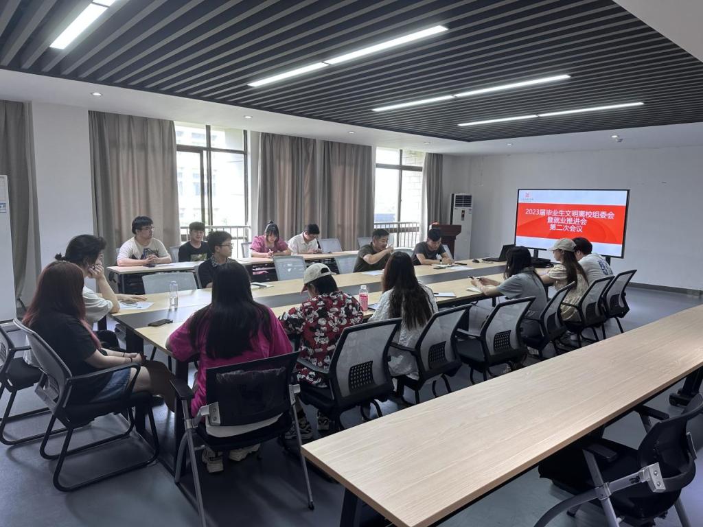2023届毕业生就业已经进入关键期和攻坚期,为全面推进毕业生就业工作,实现毕业生更充分更高质量就业,英国365集团于6月7日在艺设楼506室召开员工干部促就业工作推进会。公司党委副书记、纪委书记、副经理方勇,团委书记汪正,辅导员孙海澄以及毕业生班长和团支书、文明离校组委会全体员工干部参会。