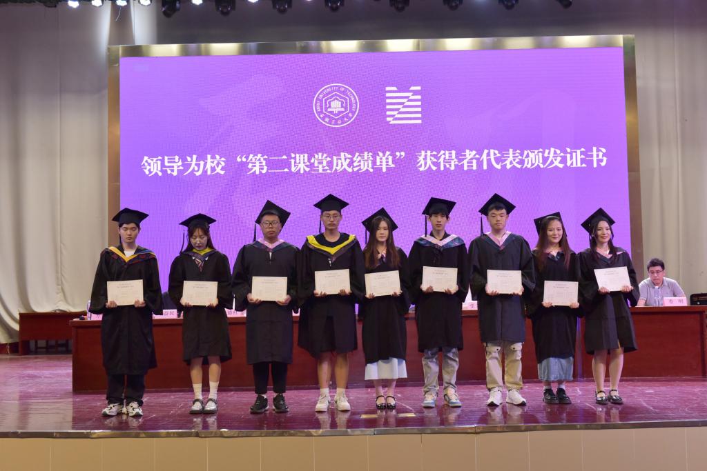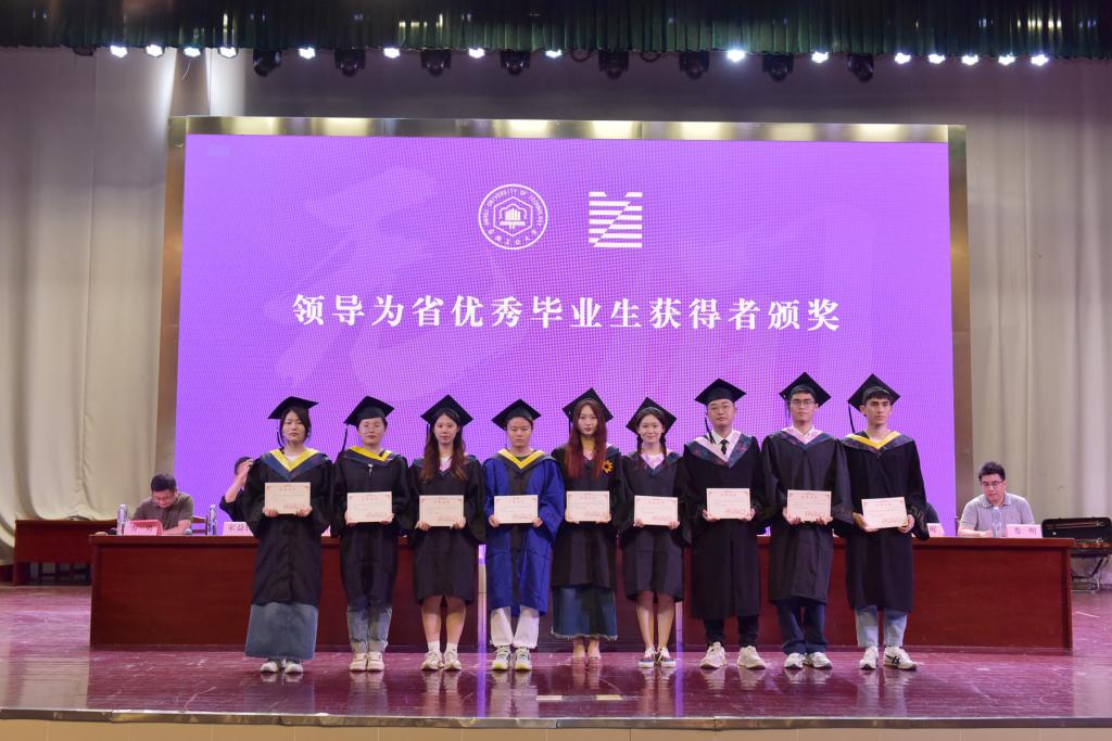 在欢快的音乐声中,领导老师们依次为校“第二课堂成绩单”获得者代表、本科生校优秀毕业生获得者颁发证书。副董事长顾明言为研究生省优秀毕业生、本科生省优秀毕业生获得者颁奖,全场响起阵阵掌声。