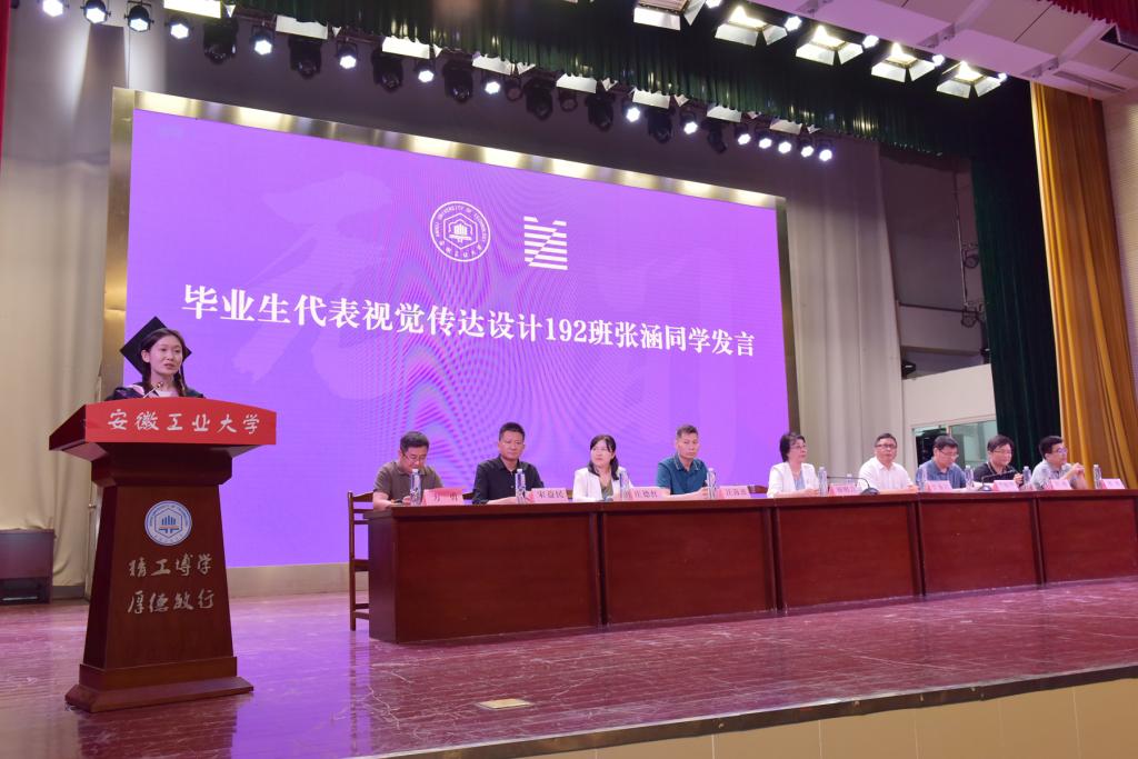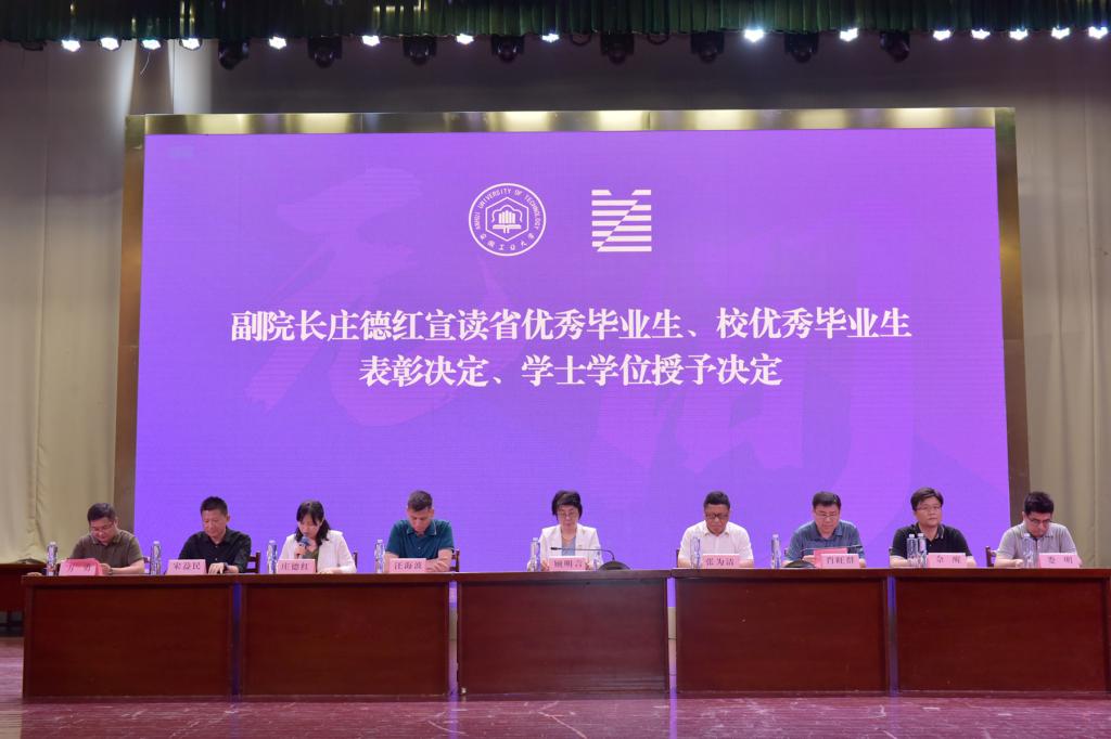 毕业典礼在澎湃的国歌声中开始。副经理庄德红宣读本科生省优秀毕业生、校优秀毕业生表彰决定、学士学位授予决定,副经理肖旺群宣读研究生省优秀毕业生表彰决定、硕士学位授予决定。宣读完毕后,毕业生代表、在校生代表登台发言,用言语表达最真挚的情感,表达对母校、师长的感恩,对未来的美好畅想。导师代表向毕业生传达殷勤期望,祝愿每一位毕业生前程似锦。