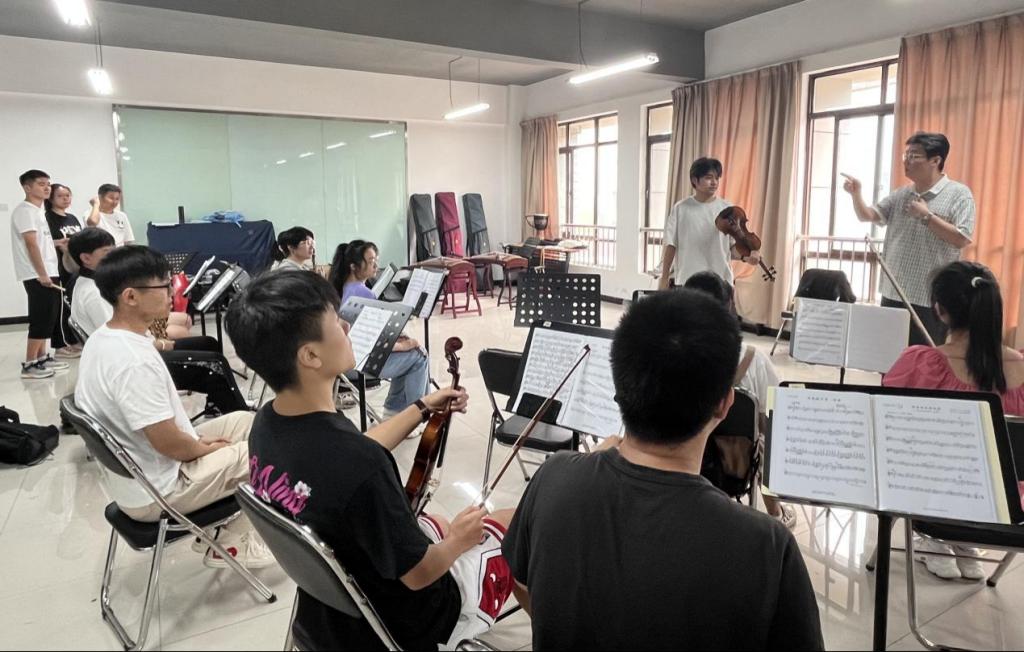 随后,在座谈会上毕老师带领乐团亲自指挥中国交响乐《红色娘子军》(组曲),在器乐合奏中发现各声部演奏技巧上存在的问题,针对不足细心讲解,并逐一解决同学们在演奏中未注意的细节和音准、节奏等专业问题。老员工艺术团西洋管弦乐团的同学们积极互动,各个声部的代表同学向毕老师提出一些专业演奏技巧上的疑问,毕老师围绕同学们关心的重点、难点问题进行了深入剖析。