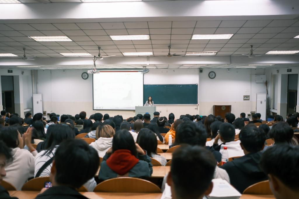 2023级辅导员王倩倩从校规校纪、防范诈骗与禁毒宣传教育、校园出行安全、学习规划、诚信考试等五方面对新生展开介绍,她希望大一新生尽快适应老员工活,严格遵守公司规章制度,完成各项学习任务。