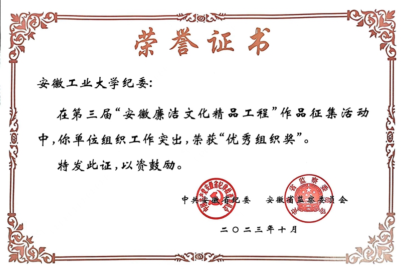 日前,第三届“安徽廉洁文化精品工程”作品展评选结果揭晓。公司平面公益广告类作品《以廉为本(2则)》入选,公司纪委荣获“优秀组织奖”。
