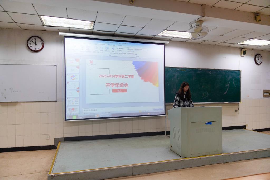 2023级辅导员王倩倩从安全问题、学习问题、心态问题、规划问题四大方面开展介绍。王倩倩详细解读了常见的诈骗手段和防范方法,分享了宿舍失火的真实火灾案例,加强了意识形态的正确引导,要求员工们务必牢记安全第一的原则。同时她从各班学情分析出发,引导员工调整心态,确立新学期学习目标。