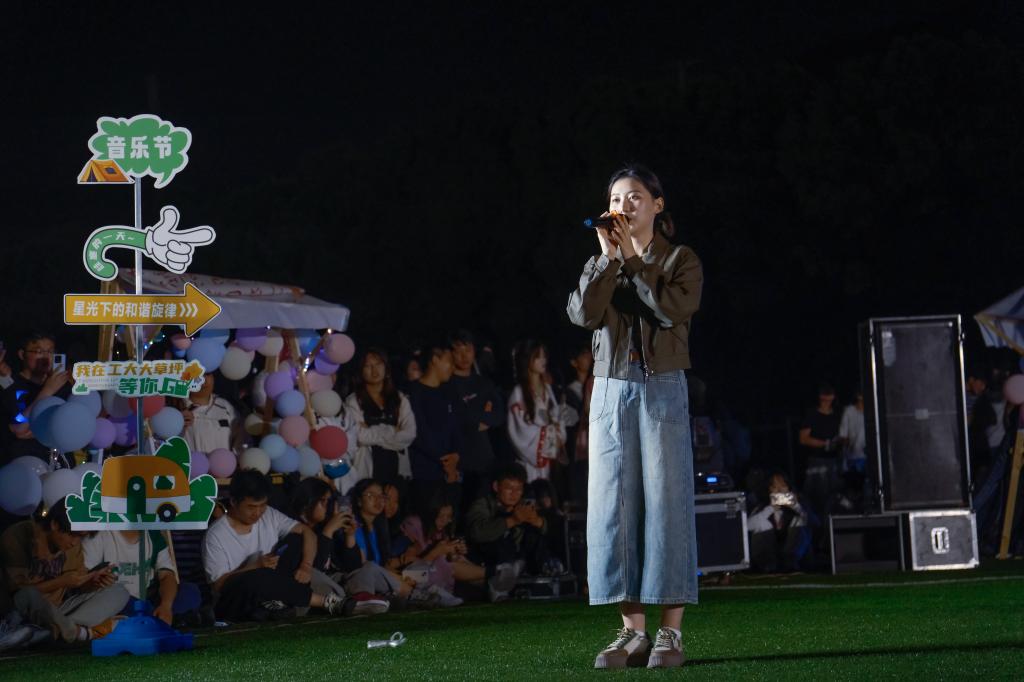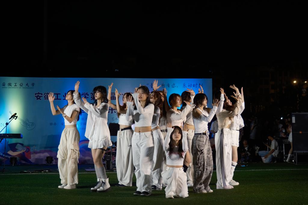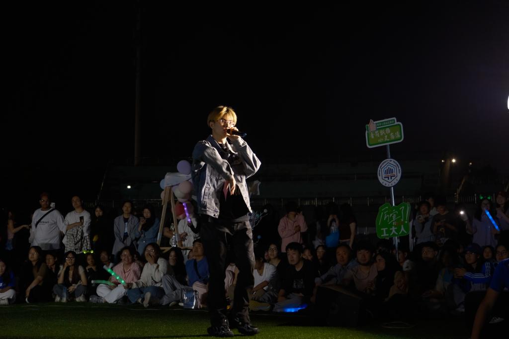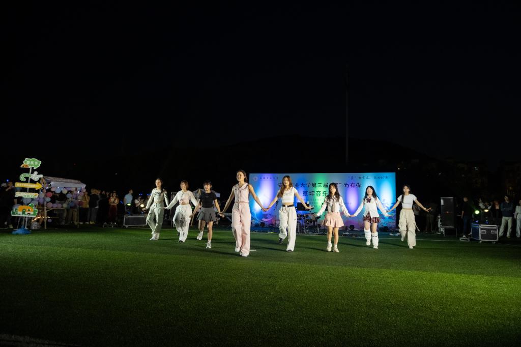 活动伊始,由校舞蹈社部分成员带来的女团舞《Yes!Ok!》用律动甜美的节奏瞬间点燃全场气氛,来往观众无一不被吸引。一舞结束,《美好的事能不能发生在我身上》、《还我蔚蓝》、《吉他与孤独与蓝色星球》、《只有音乐才是我的解药》以及《choose me》接力献唱,星空下的草坪仿佛变成了理想的花园。随后上演的舞蹈《GMIX》舞姿简约帅气,充满现代气息。夜幕渐渐昏沉,但表演的浪潮愈发热烈,模特协会的同学们踩着星光而来,《华韵》登场;说唱协会的同学们用一首首高质量原创歌曲引燃全场······观众围绕成圈,举着荧光棒高呼着,欢笑着,无论是老师还是员工,亦或是慕名而来的市民都被音乐节的狂热氛围所感染,情不自禁地摆动起来。霓虹灯投下的光影在人群间跳跃舞动,人们用丰富的律动与宇宙的频率相衬,表现出对生命、对青春的热爱。