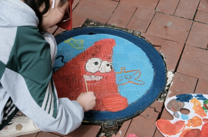 5月12日,公司青年志愿者协会组织开展校园井盖美化志愿活动,吸引了众多同学参与其中,他们利用业余时间创作,用画笔为校园井盖添置“新衣”,充分发挥了专业特长,让原本普通的井盖焕然一新、妙趣横生,绘画过程不断吸引着来往师生的目光。