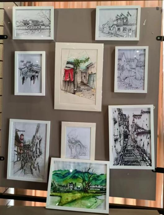 返校后,为切实提高本科生学习的积极性,教学实践中以教师为主导以员工为主体的教育理念,鼓励同学们参与教学过程,培育同学们的竞争意识,同学们在老师的指导下,在原作品基础上反复修改完善,同学们和老师一起遴选出优秀作品,显示同学们写生创作能力,展现徽州文化艺术之美。