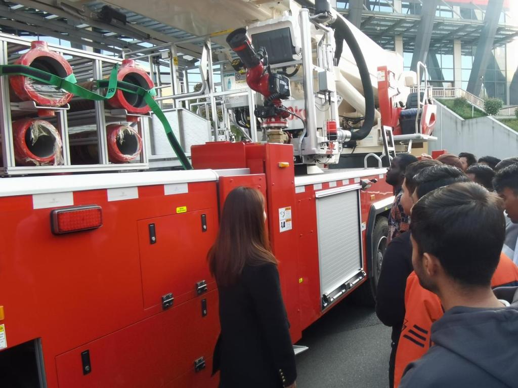 活动当天,新生们在公司的组织下,准时来到活动现场。新生们在消防员和公司辅导员的指导下,迅速按照预设的疏散路线有序撤离,整个过程紧张而有序。在模拟疏散环节结束后,消防员还为新生们展示了各类先进的消防装备,并详细介绍了各种消防器材的用途和使用方法。新生们纷纷上前参观学习,与消防员互动交流,现场气氛热烈。