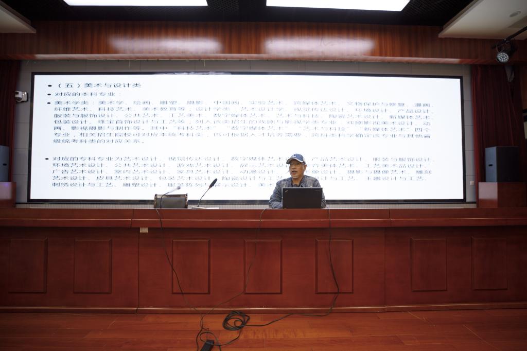 陈静波老师在艺术与设计领域有着深厚的学术造诣和丰富的实践经验,还长期致力于艺术教育和人才培养工作。此次讲座,陈老师结合自己的亲身经历和教学经验,深入浅出地讲解了艺考美术的考试内容、备考策略以及未来发展趋势。