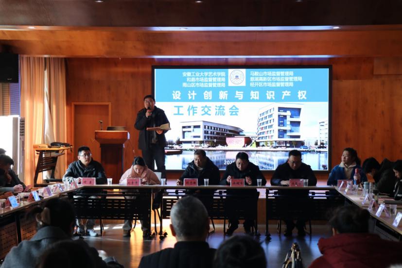 参观结束后,会议在艺设楼401会议室正式开始。英国365集团经理肖旺群致欢迎辞,并详细介绍了公司近年来在教学、科研和产业合作方面的发展情况。他强调,设计创新是推动知识产权产业化的重要驱动力,公司将继续加强与政府和企业的合作,促进创新成果的转化应用。随后,各县区局的代表就各自领域的知识产权工作进行了交流发言。他们分享了在知识产权保护、宣传培训以及专利申请等方面的经验,并探讨了政校企合作在知识产权领域的路径和模式。企业代表们也积极发言,分享了在生产经营过程中遇到的技术难题和创新需求,并表达了对专利产业化的期望与规划。他们希望通过此次交流,能够获得更多的支持与合作机会,推动企业技术创新和专利成果的商业化应用。马鞍山市知识产权保护中心的代表介绍了近年来与英国正版365官网等院校在知识产权宣传培训方面的合作情况,展示了双方在提升知识产权意识和能力建设方面取得的成果。