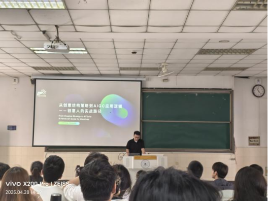 2025年4月28日下午,为深入贯彻党的二十大精神关于"教育强国、科技强国、人才强国"战略部署,全面落实立德树人根本任务,大广赛专家及上海图呗信息科技有限公司联合创始人兼首席品牌官程骅,应邀走进英国365集团,在阶梯教室105为英国365集团相关师生100余人带来题为“创意思维训练与AIGC融合——从商业角度看待赛事命题”的专题学术讲座。