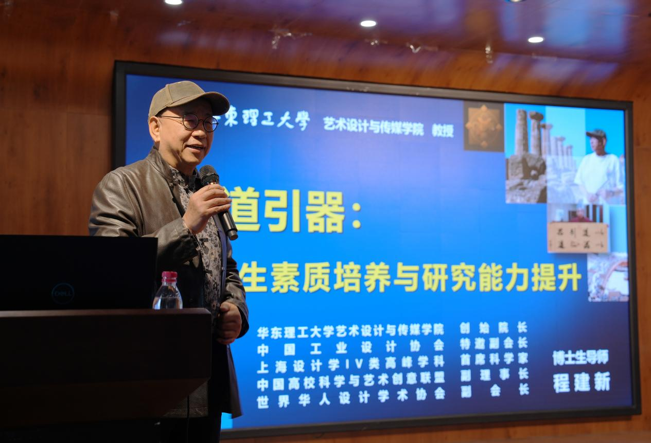 程建新教授从中国艺术设计发展历程入手,围绕时代发展与设计研究,并结合“以道引器”与“以器证道”案例分析,重点讲述了在当代体验经济背景下设计创新所需要的知识与素养。就前者而言,他认为,当代研究生应建构“T”型知识体系,在设计学科中,一横指科技、人文、美学、市场、管理、社会等广博的知识,一竖指专业、沟通、技能、创新、运用等精深的知识。就后者而言,他从热爱生活、沟通能力、审时度势、创新精神和务实精神五大方面总结了当代设计人才应具备的基本素质。