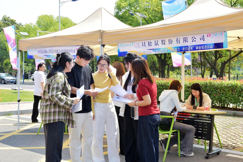 仪式后,“以展选人”艺术设计类专场招聘会在设计艺术馆广场举办,上海企一实业集团、太平洋建设集团、三只松鼠股份有限公司、苏州金螳螂建筑装饰股份有限公司、泰尔重工股份有限公司等近30家知名企业现场揽才。招聘主管们穿梭于展馆之间,通过“沉浸式”观展深入了解毕业生的创作理念和专业能力。毕业生们手持精心准备的简历作品集,与用人单位进行深入交流,详细了解岗位要求和发展空间。各企业代表积极推介企业优势,从企业文化到职业发展路径,为毕业生提供全方位的就业咨询。40余名毕业生与用人单位达成初步就业意向。(撰稿:罗凡 审核:方勇 肖旺群 徐新卫