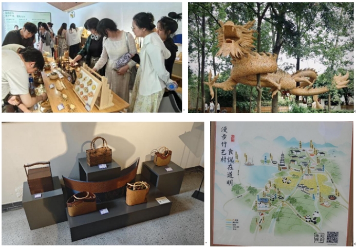 道明竹艺村因有着2000多年悠久历史的国家级非遗“道明竹编”而得名。竹艺村的成功案例展示了如何将非物质文化遗产与乡村振兴紧密结合。通过考察,同学们感受了乡村文化与艺术的融合,深入了解竹编这一传统手工艺如何在现代社会中得以传承和发展,以及它如何成为推动乡村经济、文化和社会发展的重要力量。