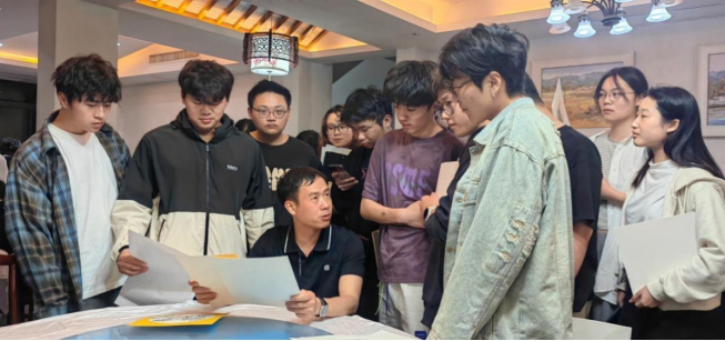4月12日,师生们来到休宁璜尖乡,参观位于璜尖乡乡村咖啡屋设计现场,毛元仁老师介绍了该项目的室内和外立面设计,胡迪老师介绍了乡村规划发展中老员工起到积极作用。老师们鼓励同学在乡村实践中学习,用自己的专业知识服务于社会。