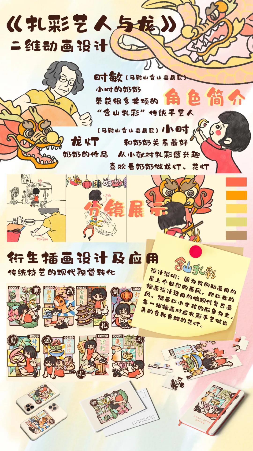 设计说明:在视觉设计中,利用艺术设计技巧,使自然的、乡土的、古朴的形态融为一体,使自然的、民俗的色彩浑然一体,以艺术的、淳厚的视觉构成了含山扎彩技艺形象。其视觉表现也在商业与艺术、民俗文化之间寻求一种平衡,即体现了含山扎彩品牌价值,又使技艺形象和品牌形象成为整体,这也是视觉设计的一种创新探索。