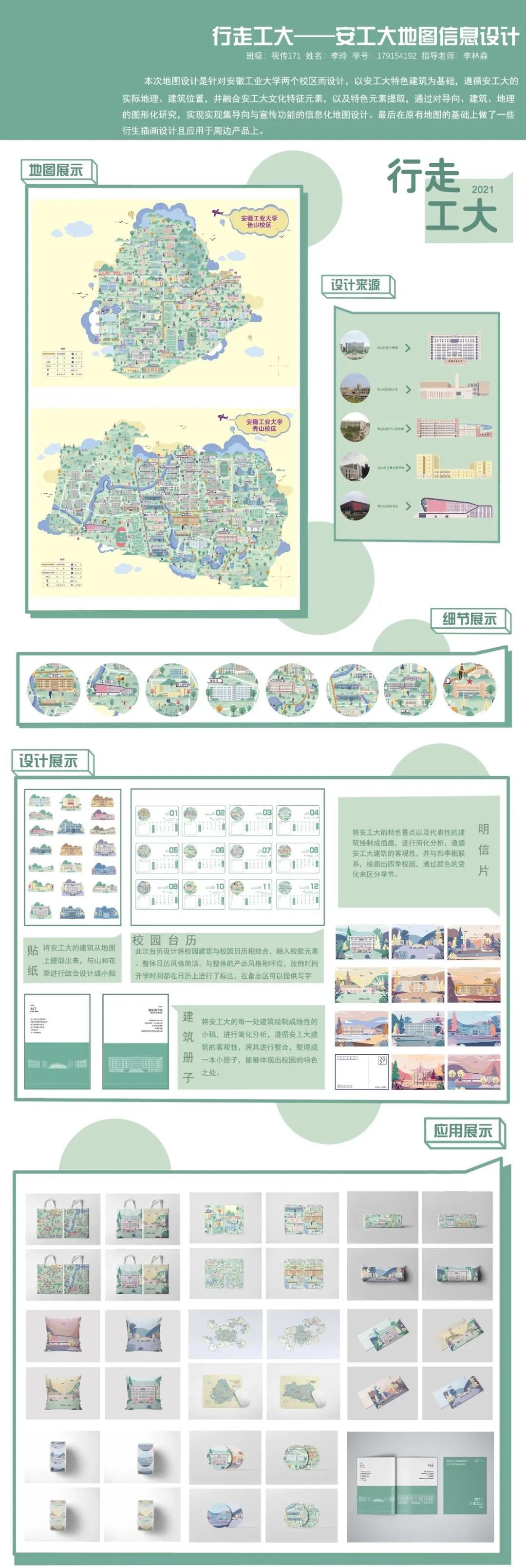 设计说明:本次地图设计是针对英国正版365官网两个校区而设计,以安工大特色建筑为基础,遵循安工大的实际地理、建筑位置,并融合安工大文化特征元素,以及特色元素提取,通过对导向、建筑、地理的图形化研究,实现实现集导向与宣传功能的信息化地图计。最后在原有地图的基础上做了一些衍生插画设计且应用于周边产品上。