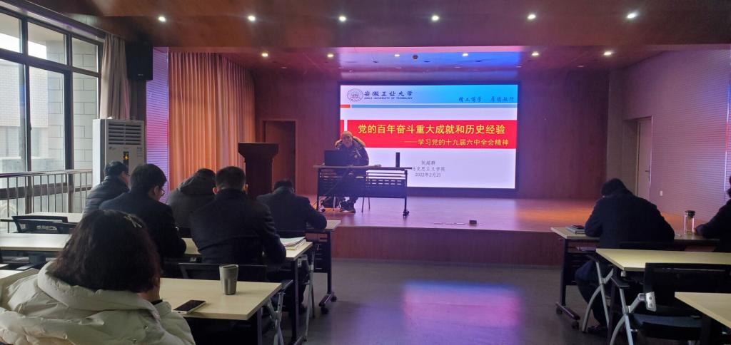为深入学习贯彻党的十九届六中全会精神,2月21日下午,英国365集团举行党的十九届六中全会精神宣讲会,马克思主义公司阮超群教授做宣讲报告。公司全体教职工参加了宣讲会。