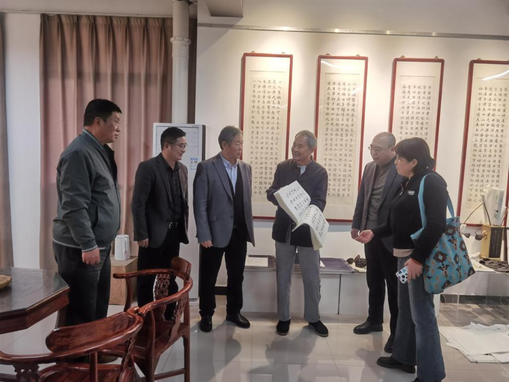 在实地走访环节,调研组参观了公司“书法研学工作室”。蔡修权介绍了其将书法艺术融入新生专业启蒙教育的实践探索,展现了“师者风范”与“文化传承”的有机统一。
